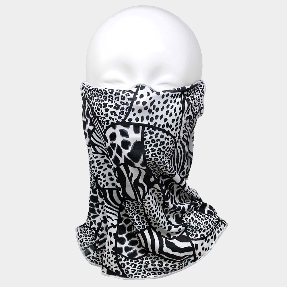 Details • Size: 12.2 X 9.4 X 12.6 • Material : 100% Polyester • Can be worn as Mask or Scarf • Has Ear Hole • Stand out with this patchwork animal print gaiter. Designed for comfort and versatility, it can be worn as a face cover, scarf, bandana, or head wrap. Perfect for outdoor adventures, sports, travel, or everyday streetwear styling.