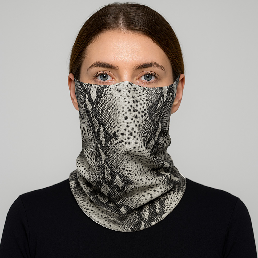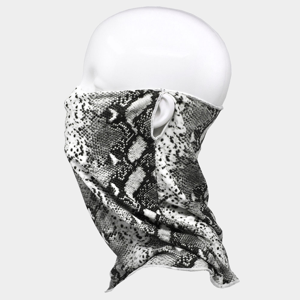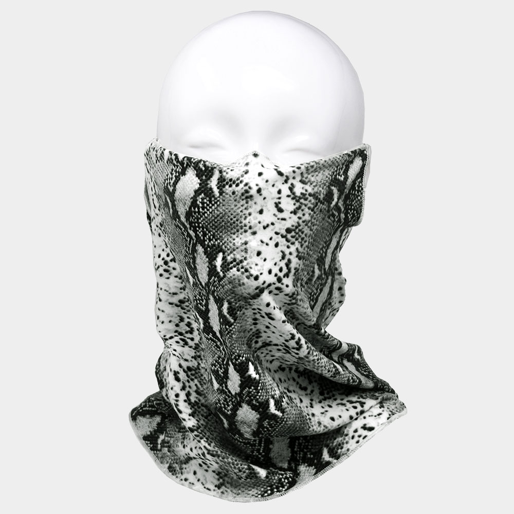 Details • 100% Polyester • Size : 12.2" X 9.4" X 12.6" • Can be worn as Mask or Scarf • Has Ear Hole • Elevate your style with this snakeskin print face and neck gaiter. A versatile accessory designed for use as a face cover, scarf, bandana, or headband. Lightweight and breathable, perfect for outdoor activities, travel, and everyday wear.