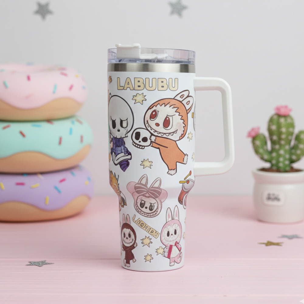 • Add fun to your daily routine with this monster bunny cartoon character travel tumbler. Featuring a playful design with cute graphics, a sturdy handle, and secure lid, this 40oz tumbler keeps drinks hot or cold. Perfect for collectors, fans of quirky style, or anyone who enjoys unique drinkware.