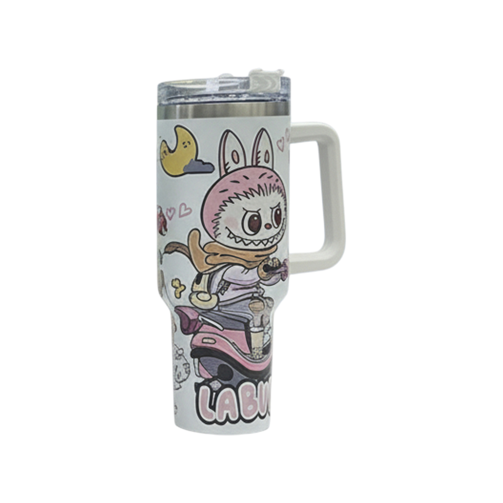 • Add fun to your daily routine with this monster bunny cartoon character travel tumbler. Featuring a playful design with cute graphics, a sturdy handle, and secure lid, this 40oz tumbler keeps drinks hot or cold. Perfect for collectors, fans of quirky style, or anyone who enjoys unique drinkware.