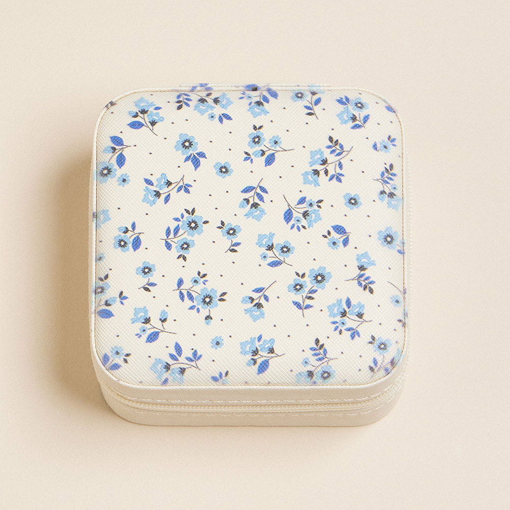 Flower Pattern Portable Square Jewelry Box