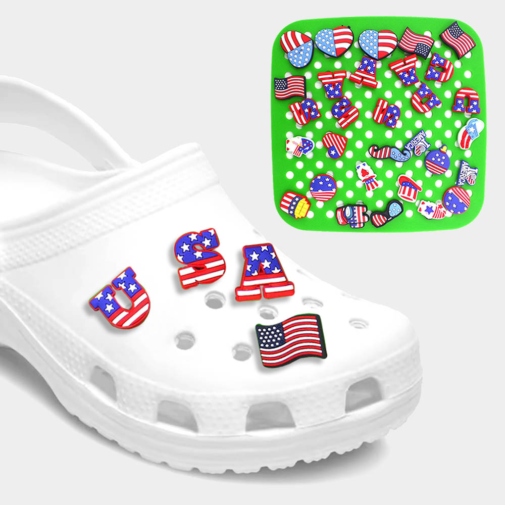 Enamel American USA Flag Western Boot Hat Bow Star Heart Charm Beaded Necklace