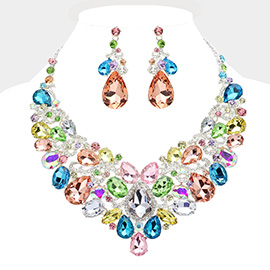 Oval Stone Accented V Shaped Rhinestone Necklace