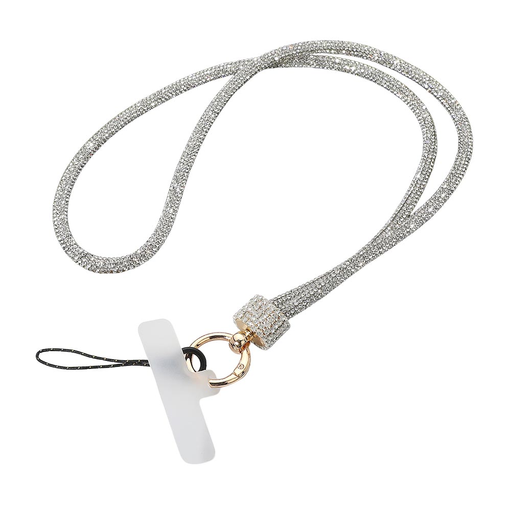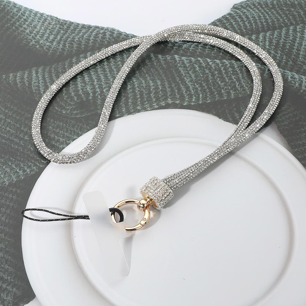 • Elegant crystal lanyard wrist strap featuring a sparkling design with a secure keyring and phone loop attachment. Perfect for carrying keys, ID cards, or small accessories while adding a touch of glamour and convenience to your everyday essentials.