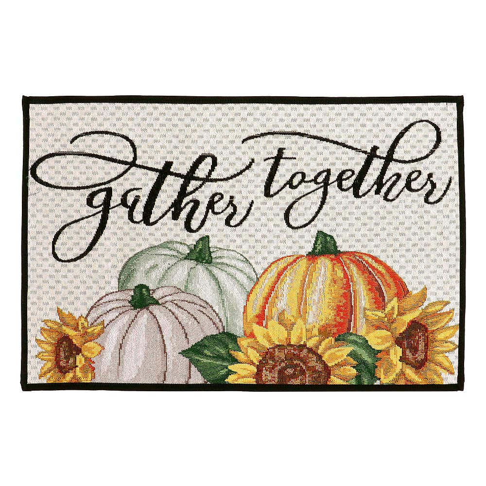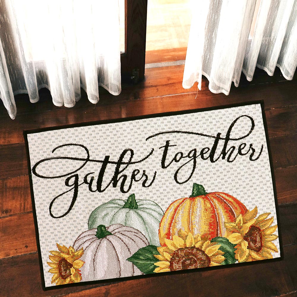 Gather Together Message Pumpkin Sunflower Printed Tapestry Rug / Door Mat