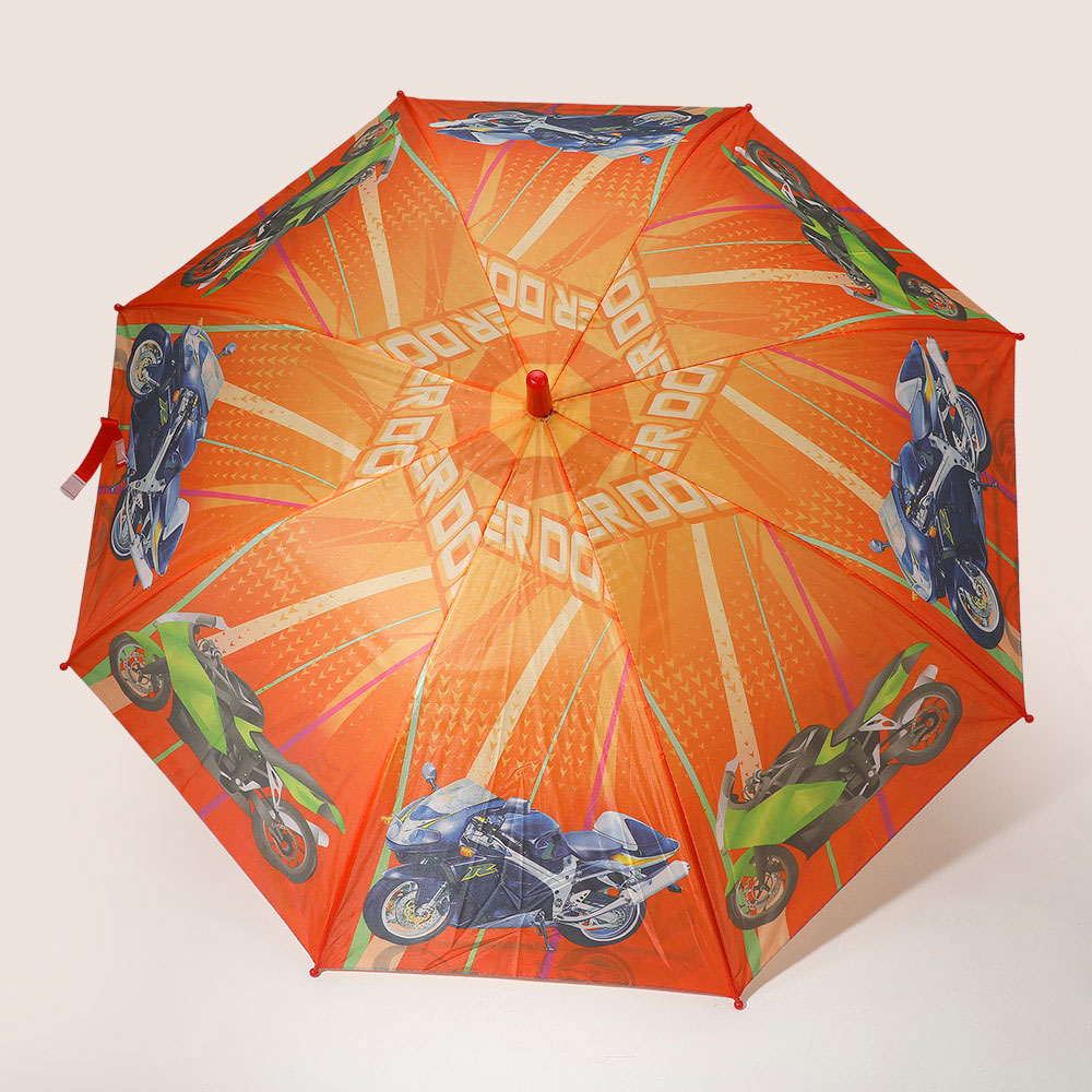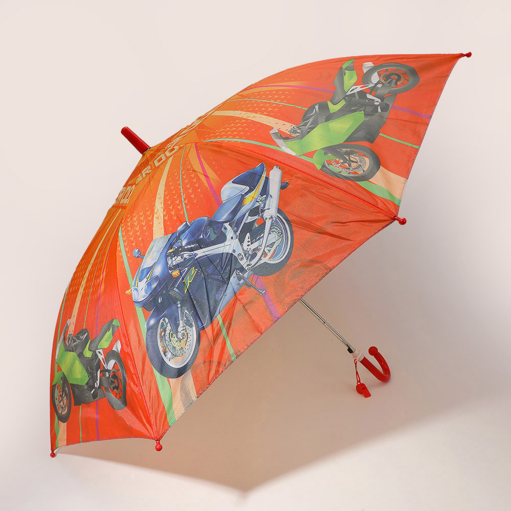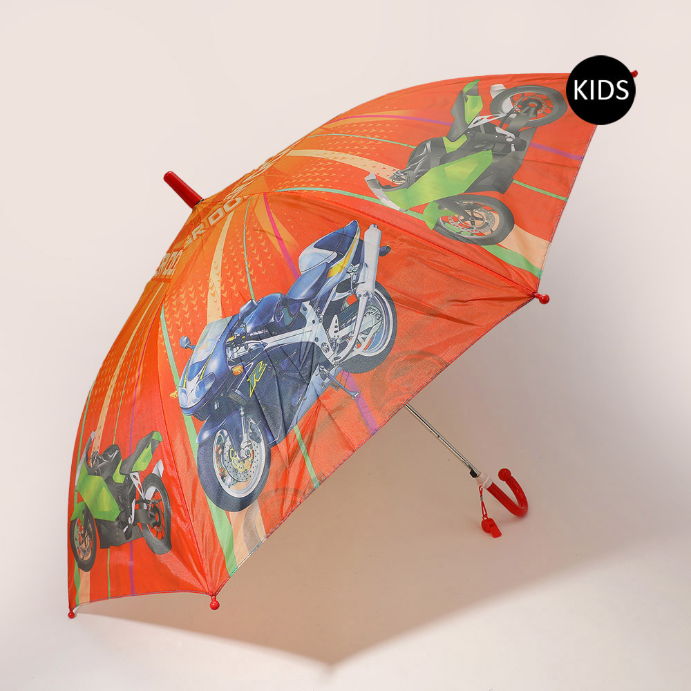 Details • Size : 26" L • Make rainy days exciting with this kids' umbrella featuring dynamic motorcycle graphics and energetic lettering. Its bold design, durable construction, and easy-to-hold handle offer dependable coverage while adding a thrilling touch to any young adventurer’s rainy day gear.