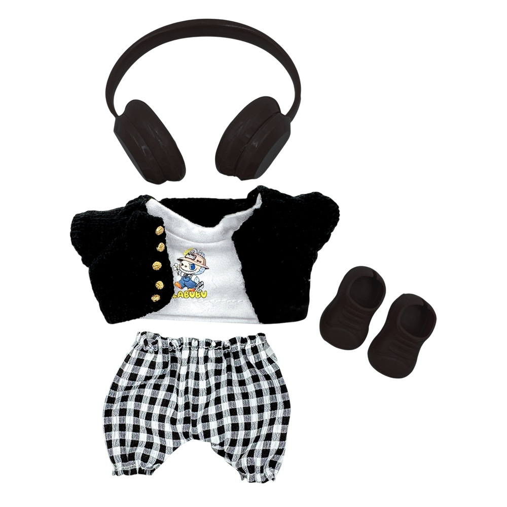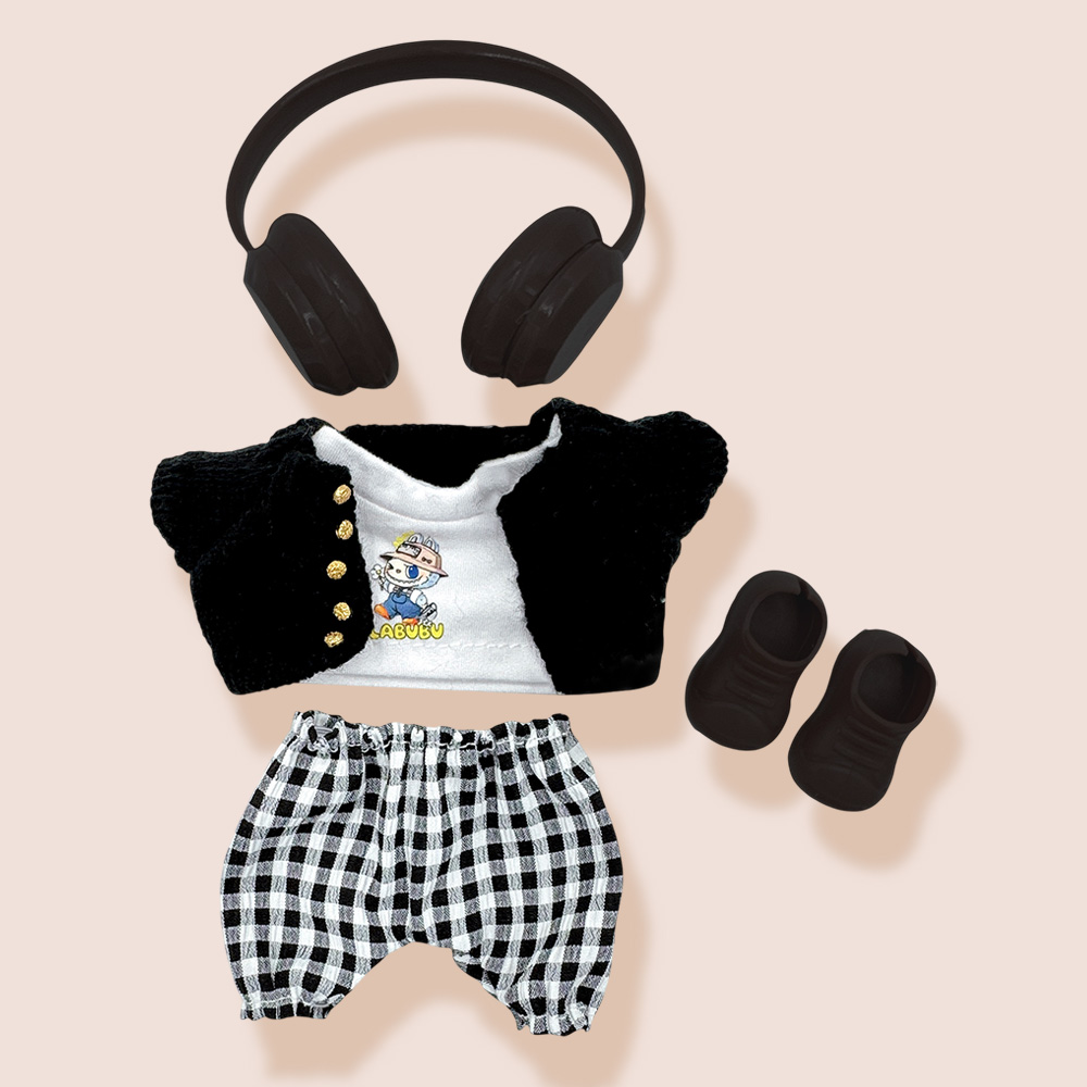 • Stylish doll outfit set includes a knit button-up cardigan, casual tee, gingham shorts, matching headphones, and slip-on shoes. Perfect for adding personality and charm to any doll collection.