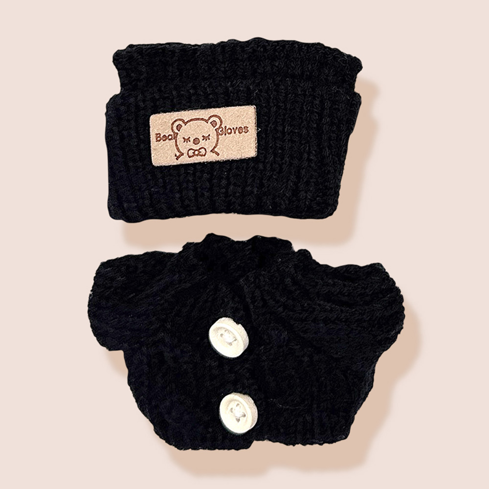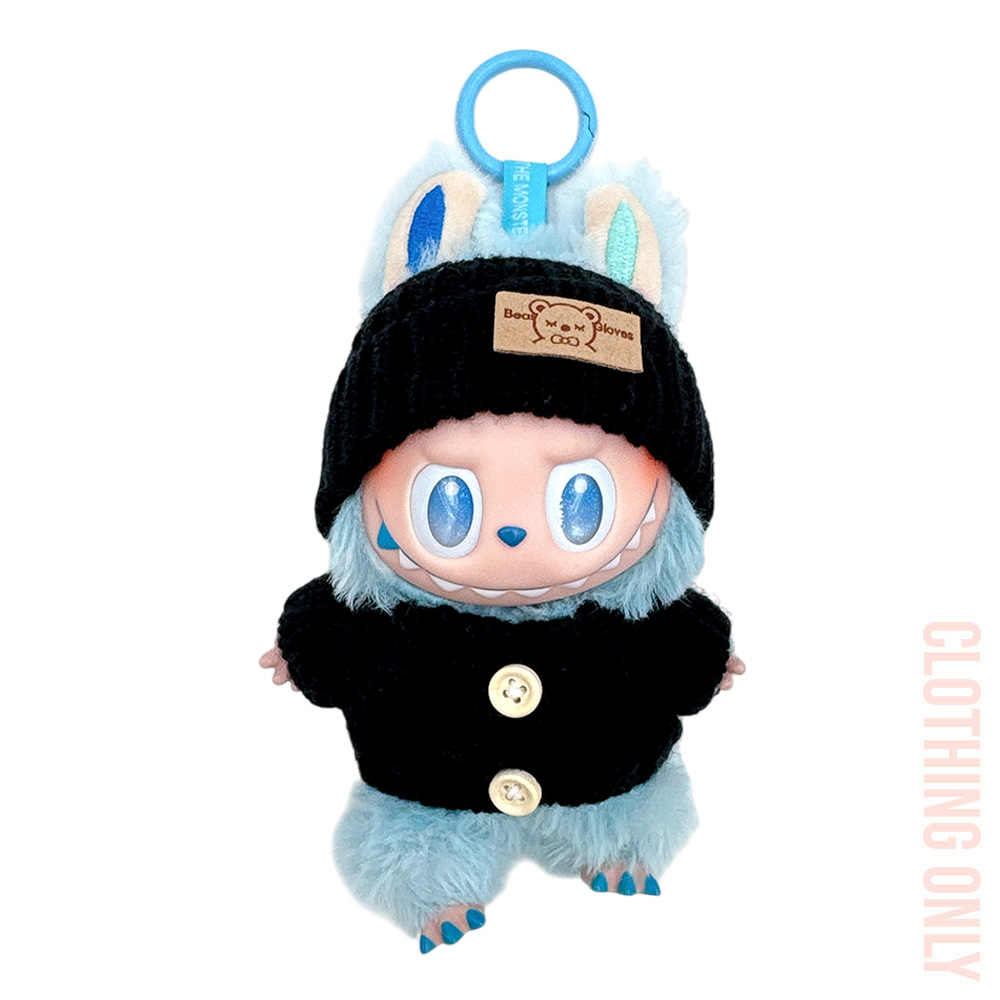 Details • Size : One Size • Material : 100% Polyester • Labubu Doll Compatible • Doll NOT Included • Adorable knitted doll clothing set featuring a buttoned sweater and matching scarf. Perfect for giving dolls a cozy, stylish look and keeping them warm during pretend play adventures.