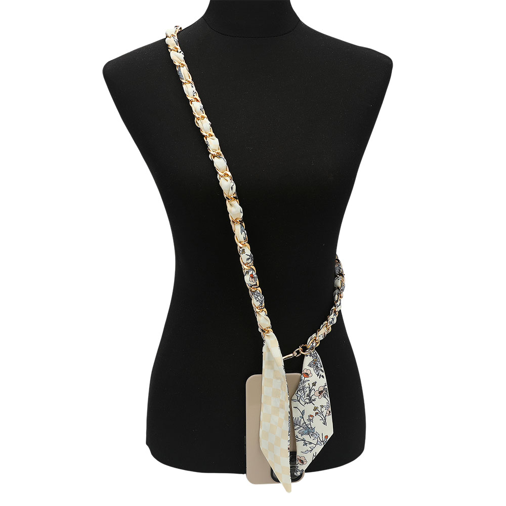 • Add a chic touch to your phone with this patterned scarf chain strap featuring an elegant border design and gold chain accents. Lightweight yet durable, it offers hands-free convenience and timeless style—perfect for elevating your everyday look or keeping essentials close in style.