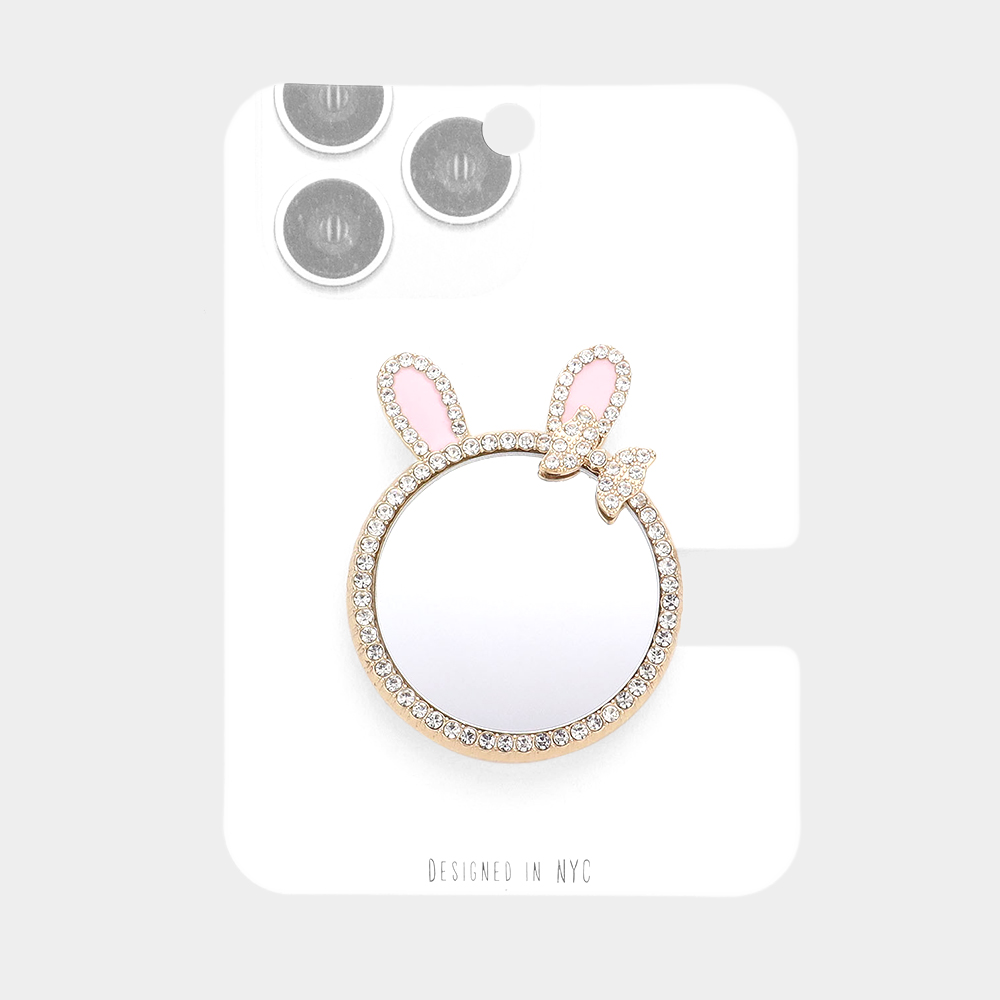 Rhinestone Embellished Bunny Bow Mirror Adhesive Phone Grip and Stand