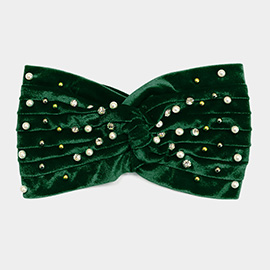 Crystal Pearl Detailed Twisted Velvet Headband Quick Shop