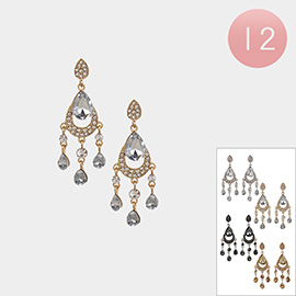 12Pairs - Faceted Teardrop Stone Beaded Chandelier Dangle Earrings