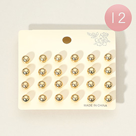 12Pairs - Round Stone Centered Stone Paved Flower Stud Earrings