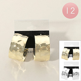 12Pairs - Textured Metal Hoop Pin Catch Earrings