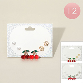 12 SET OF 3 - Fruit Assorted Stud Earring Set