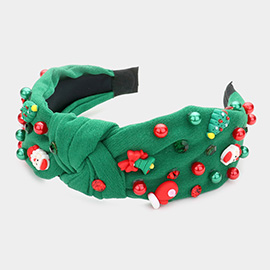 Christmas Tree Santa Claus Jingle Bell Glove Pearl Stone Embellished Knot Burnout Headband