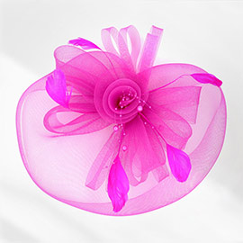 Mesh Flower Feather Pearl Trimmed Fascinator / Headband