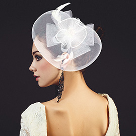 Flower Feather Mesh Bow Fascinator / Headband