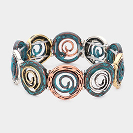 Colorful Floral CZ Stone Tip Twisted Cuff Bracelet