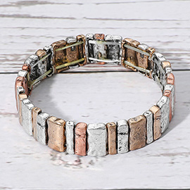 3PCS - Speckled Resin Pebble Metal Bar Beaded Stretch Multi Layered Bracelets