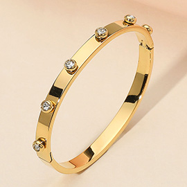 14K Gold Plated CZ Stone Paved Bean Bar Pointed Bracelet
