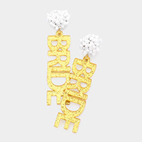 Brass Metal Rhinestone Embellished MAMA Stud Dangle Earrings
