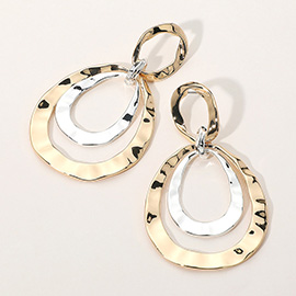 Hammered Metal Triple Open Oval Layered Dangle Earrings