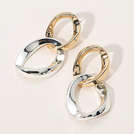 14K Gold Plated Two Tone Twisted Oval Link Drop Earrings