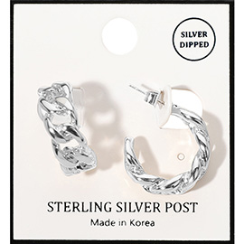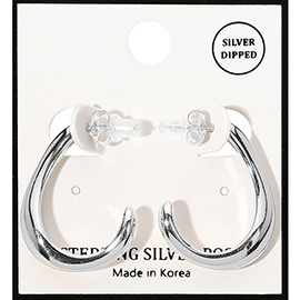 Silver Dipped Sterling Silver Post Chunky Hoop Earrings