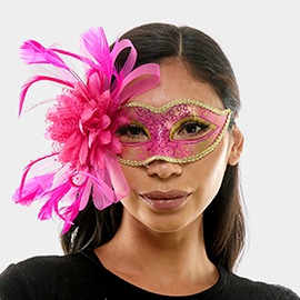 Elegant Feather Glitter Detail Masquerade Halloween Mask