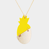 Leopard Patterned Genuine Leather Angled Pendant Double Layered Necklace
