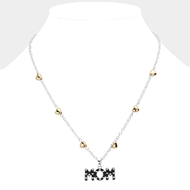 White Gold Dipped CZ MAMA Message Metal Bar Pendant Necklace Quick Shop