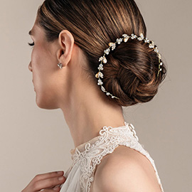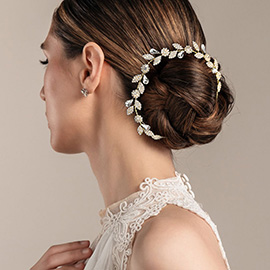 CZ Stone Paved Flower Accent Leaf Vine Bun Wrap Headpiece