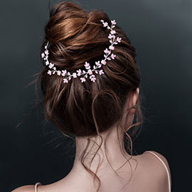 CZ Stone Paved Flower Accent Leaf Vine Bun Wrap Headpiece