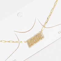 BRIDE Gold Dipped Enamel Rectangle Message Pendant Necklace
